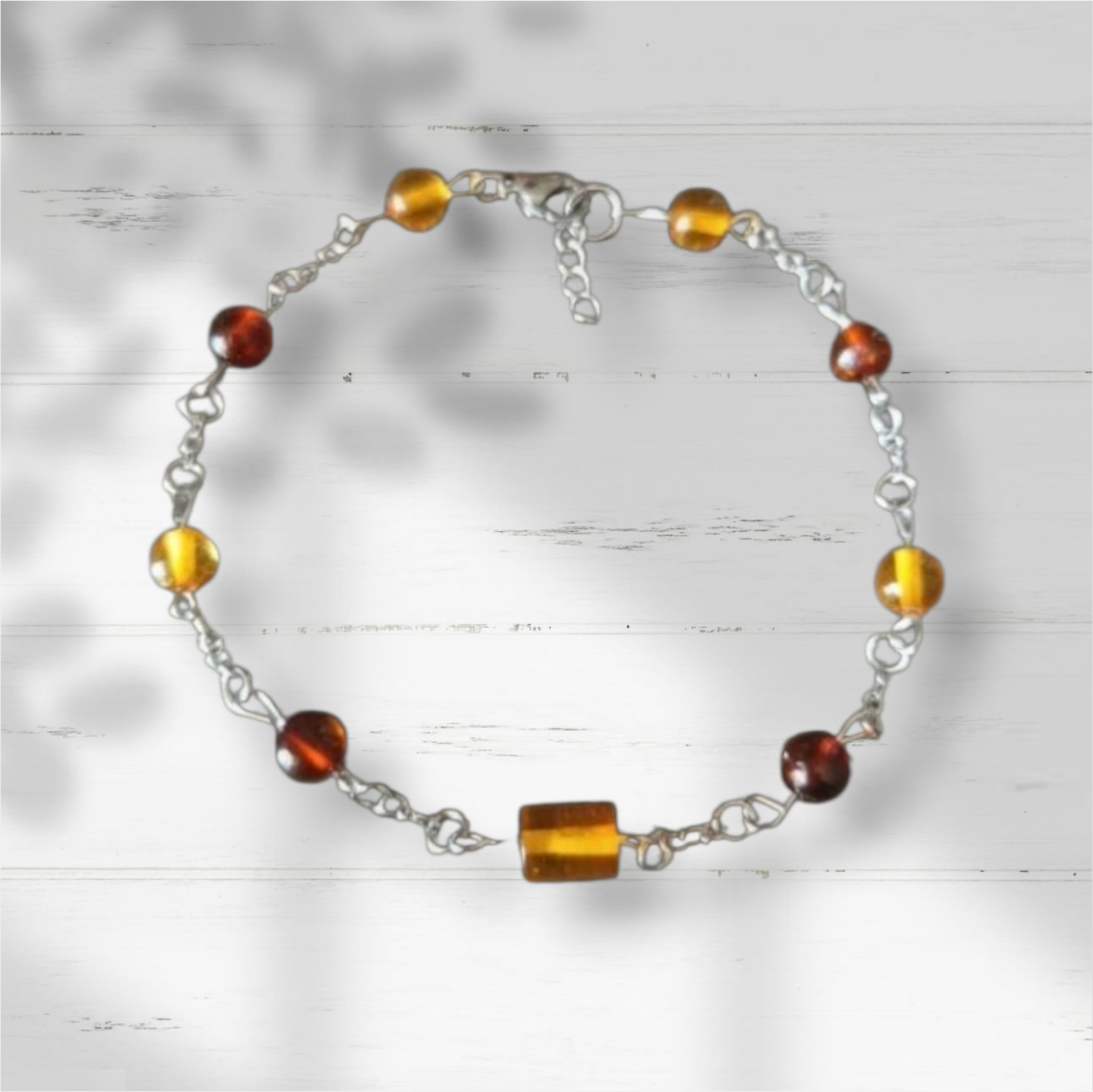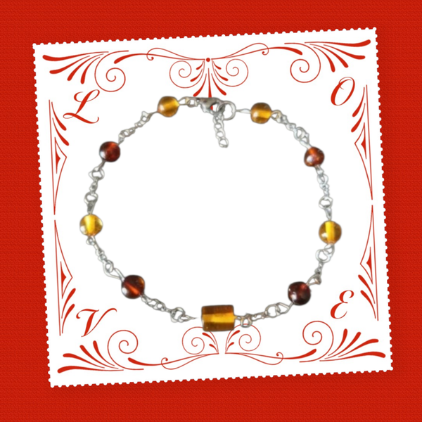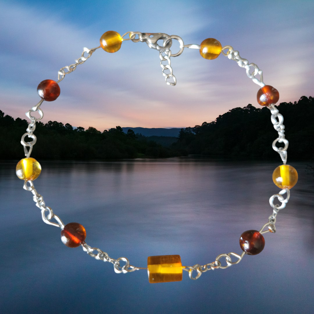 bracelet de cheville en pierres naturelles 🌹, [ ambre ], anneaux et tiges en acier inoxydable 304 argent , fait main, VALY'S JEWELRY 🦋