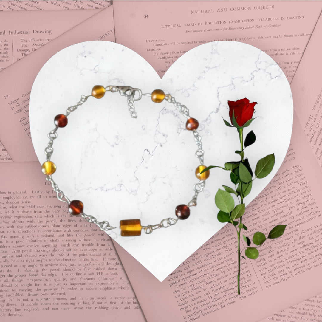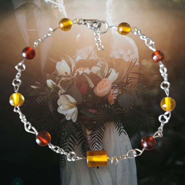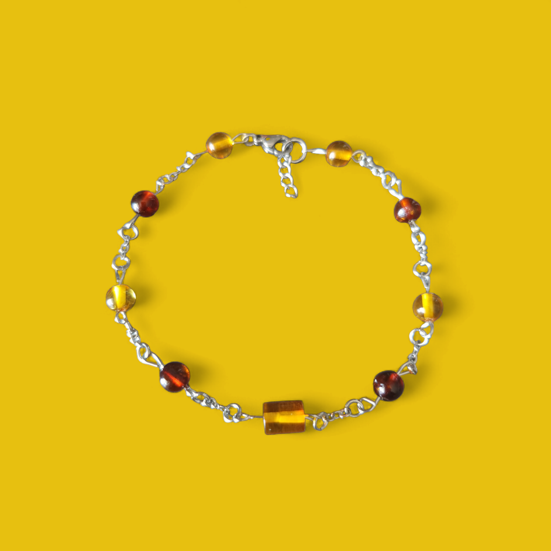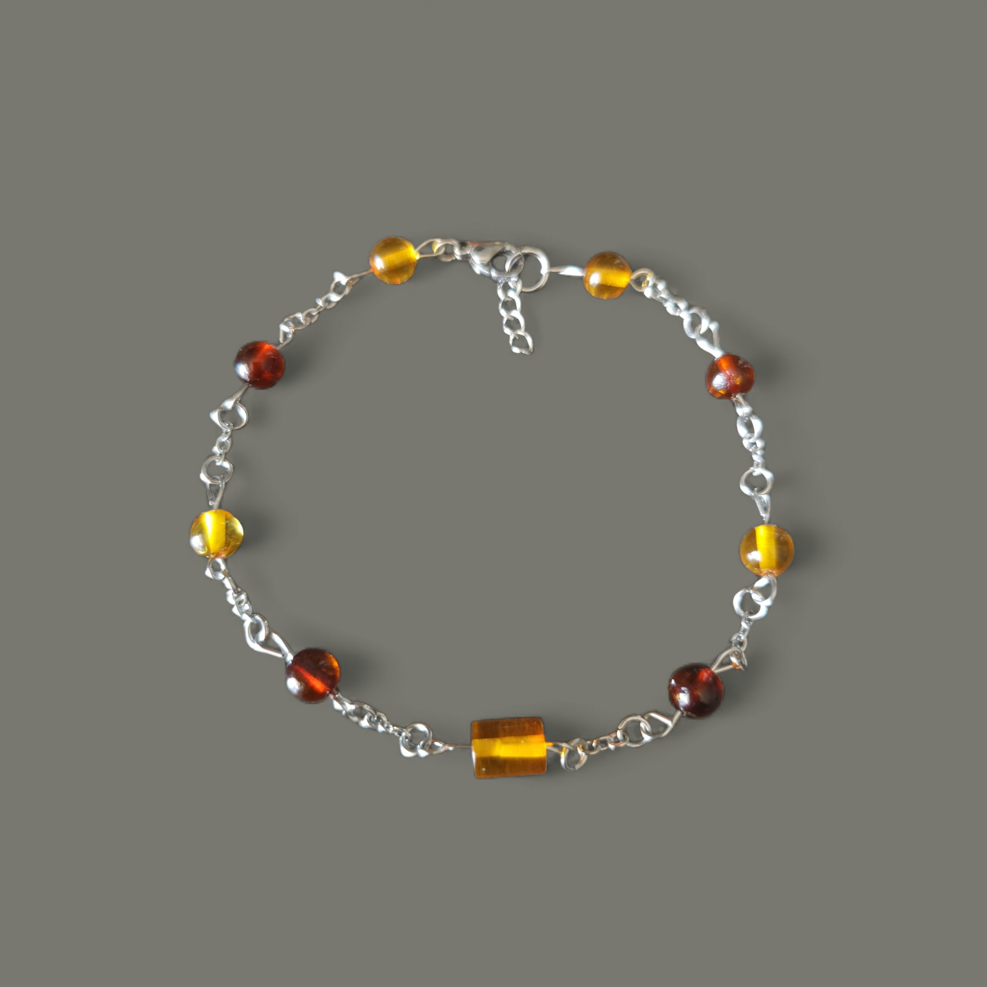 bracelet de cheville en pierres naturelles 🌹, [ ambre ], anneaux et tiges en acier inoxydable 304 argent , fait main, VALY'S JEWELRY 🦋