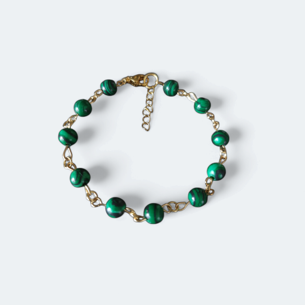 Ravissant bracelet en pierres naturelles 🌹, [ malachite ], anneaux et tiges en acier inoxydable 304 doré , fait main, VALY'S JEWELRY 🦋