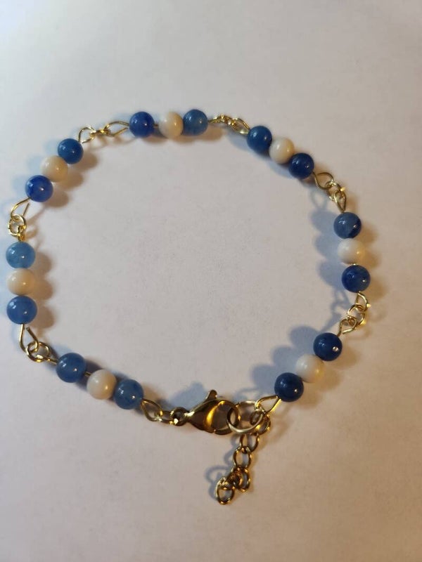 Ravissant bracelet en pierres naturelles 🌹, [ apatite bleue, howlite blanche], anneaux et tiges en acier inoxydable 304 doré , fait main, VALY'S JEWELRY 🦋