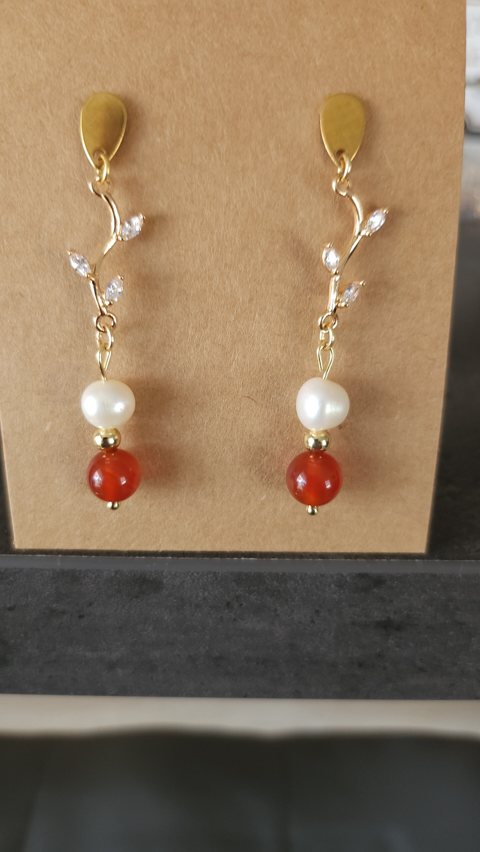 Boucles d’oreilles délicates en pierre naturelle et acier inoxydable doré ✨